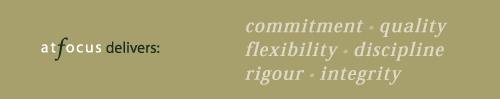 AtFocus is a dynamic and versatile consulting firm, dedicated to assisting organizations achieve enterprise wide continuous improvement. Employing proven methods and tools our consultants will tailor their approach to meet the objectives of your project. Combined, we have over 60 years of consulting experience, specializing in: